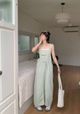 N1867 韩国jennie同款!假两件条纹西装阔腿裤