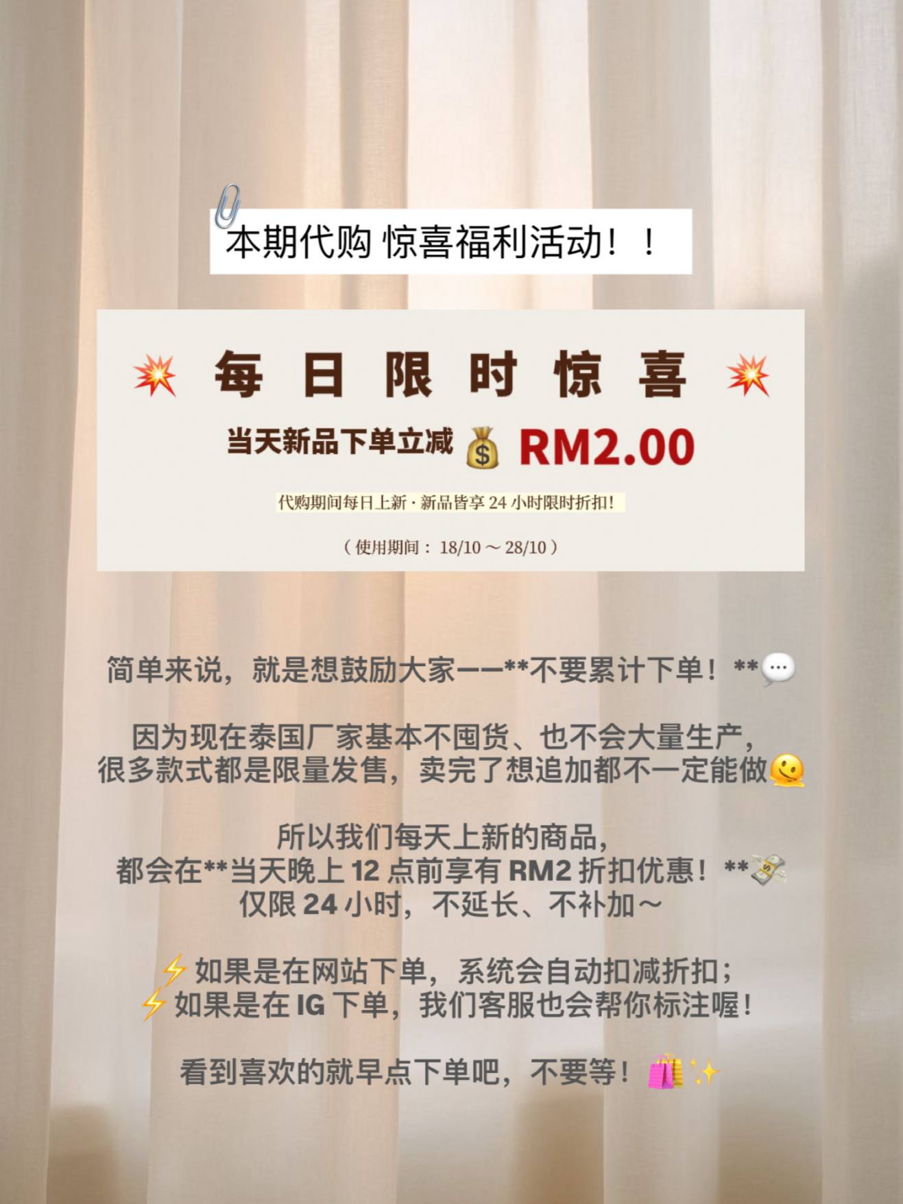 🩵 单品售价低于 RM19.90 不参与折扣活动 / 组合优惠 & 仅限服饰其他都不参与哦